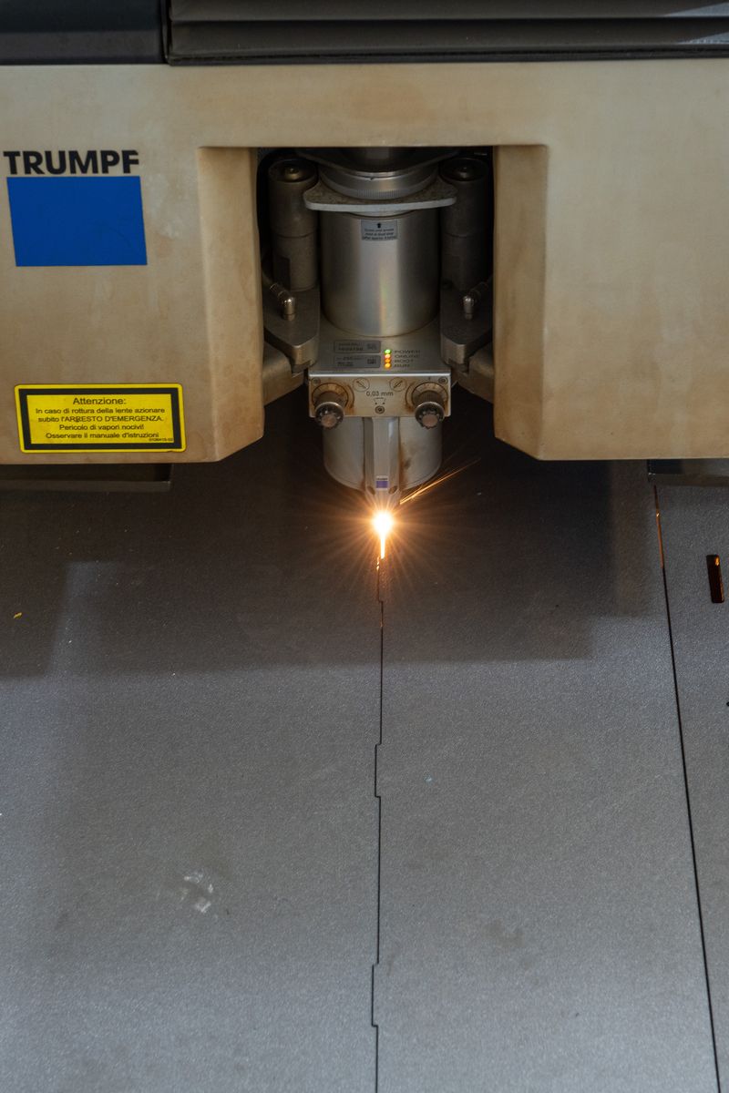 • Taglio Laser: Trulaser 5060 Trumpf - campo di lavoro di 6000x2000mm; potenza 6 kw; spessori fino a 25 mm per l’acciaio, 25mm per l’acciaio inox e 15mm per l’alluminio.